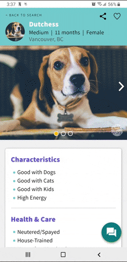 With more time, I would love to develop the other side for shelters and rescue groups. I truly believe they are just as important in the success of Plucky as much as the end-users.